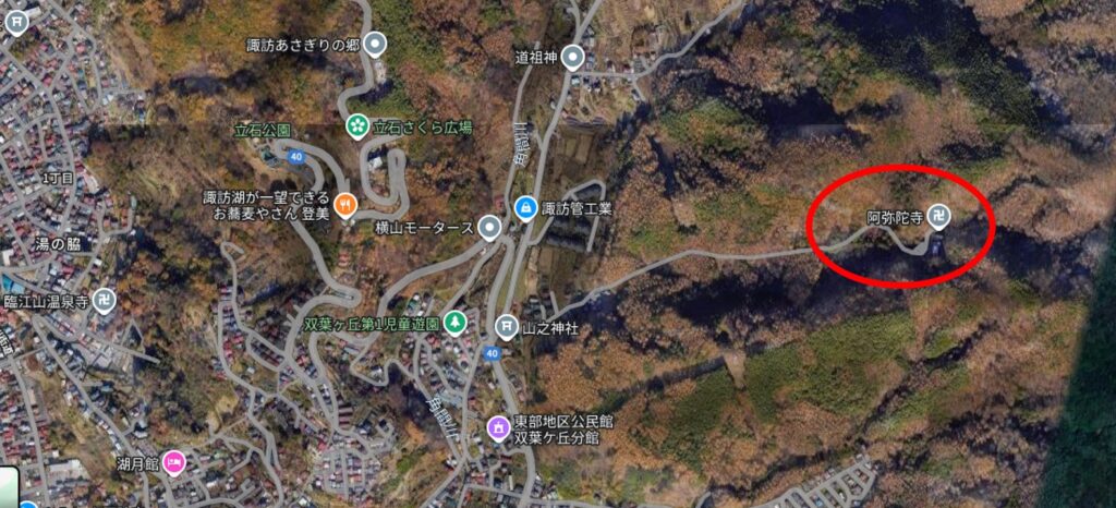 諏訪八景として古来から有名な場所であり、阿弥陀寺の本堂まで登ると諏訪湖が一望できます。