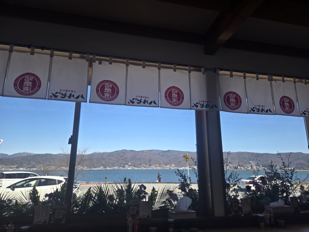 諏訪湖を眺めながら、ふらっとラーメンを食べるには最適です。