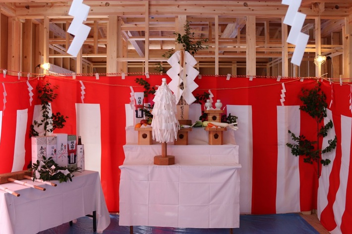 上棟式を終え、竣工まで無事安全に工事が進みますよう、お祈りしたいと思います。この度は、上棟式おめでとうございました。